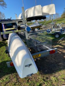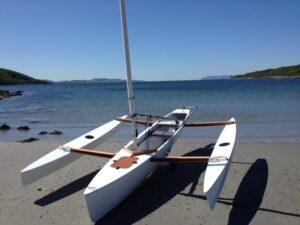 This trimaran is in good condition with the usual signs of use.Main hull professionally tidied up in 2023. Has a little warping on one of the outriggers but this has no effect on performance. Comes with a good road trailer, as well as a portage trolley. Only sailed a couple of times a year in the Lakes and Scotland.Located in the Lakes.