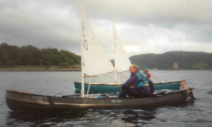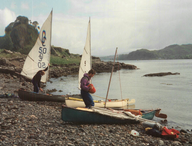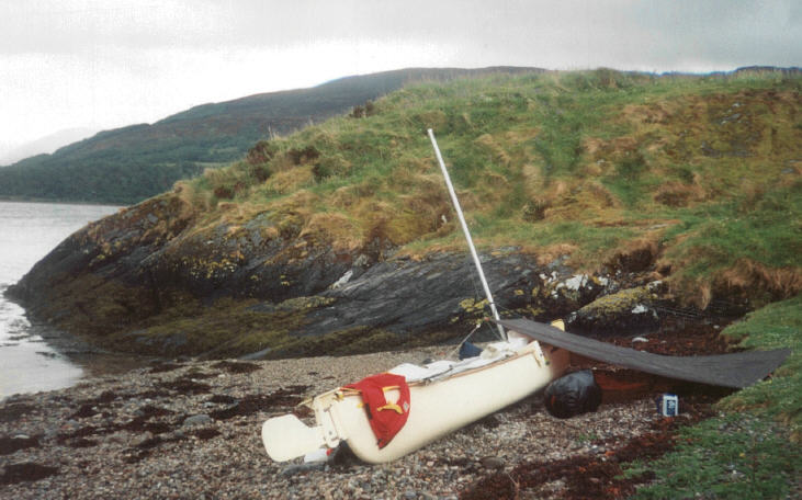The next leg was another exposed five or so miles before coming into the lee of Lismore Island. Only a couple of hours of light to moderate winds was needed and now the tide was going our way again we wanted to get on. A short sail back over to Kerrera’s north end to take a closer look at conditions outside the sheltered channel proved to be most useful as we were able to chat with Mark Carter at his B&B/campsite enterprise aimed at sea-paddlers and divers. He was also able to get a Metfax for us which suggested worse conditions for the next day [NOTE: in 1994 we did not have mobile phones, let alone smartphones to obtain the weather forecasts we so readily benefit from these days!].